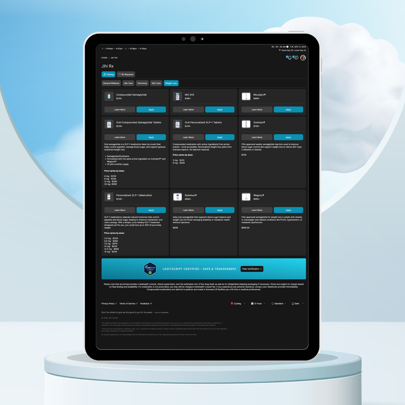 JihiRx is your gateway to modern support for metabolic health, hormone balance, and more - powered by a curated network of licensed healthcare providers and pharmacies.